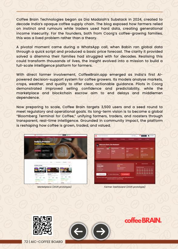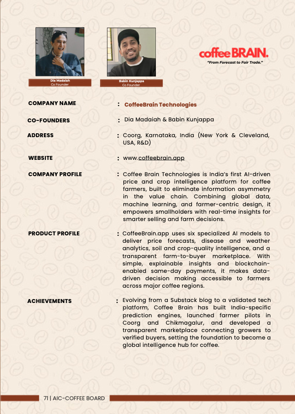 And then, one of the real highs of this early year: Coffee Brain was featured in a coffee table book published as part of the centenary celebrations of India’s coffee research ecosystem - Coffee Board. Seeing our story documented alongside other coffee-based startups and enterprises was quietly surreal. What started as a Substack, a lot of late-night conversations, and a deeply personal problem rooted in Coorg’s coffee fields is now part of a larger, historical narrative. It’s grounding, and it’s motivating in a way that’s hard to put into words.